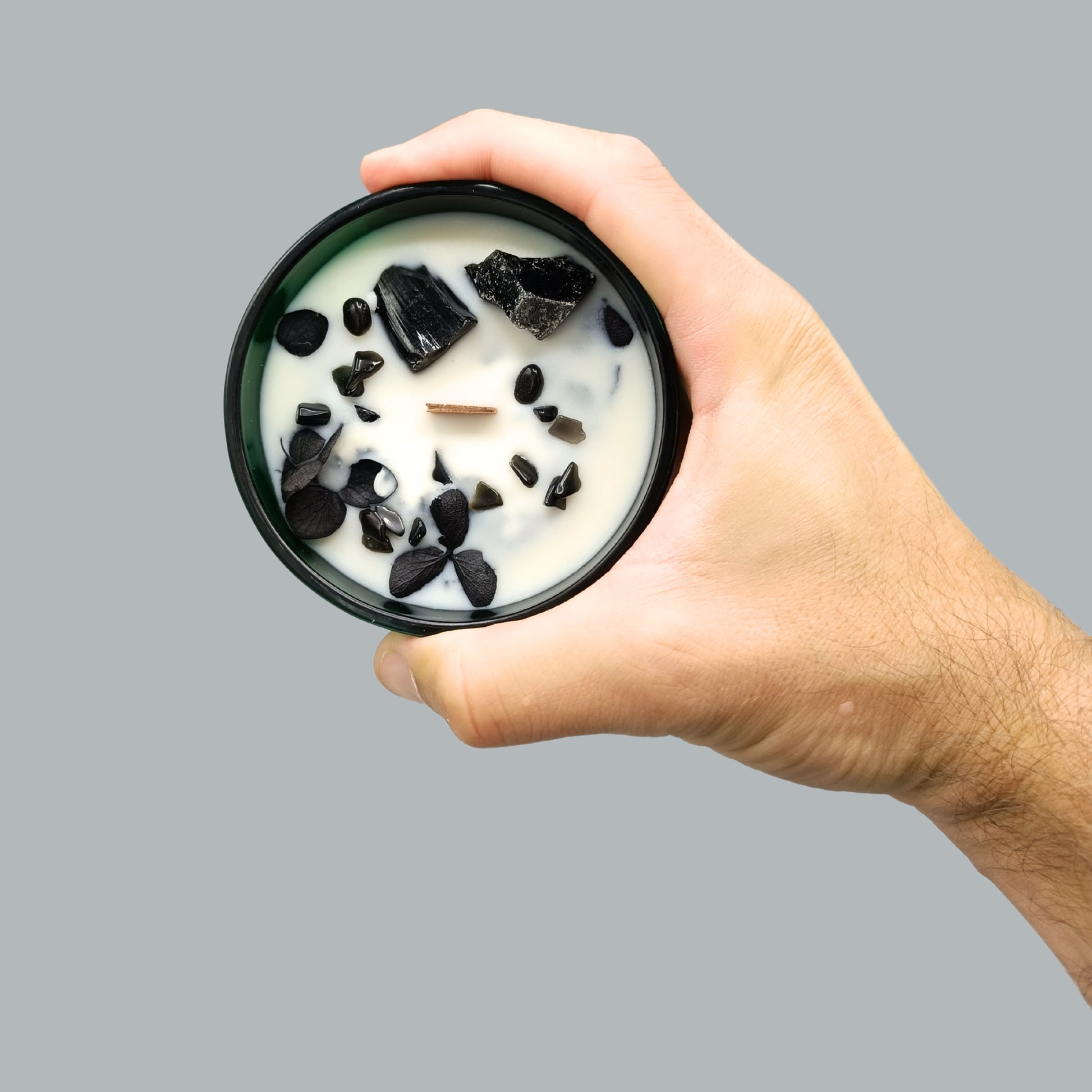 Cette bougie, qui s'appuie sur la pierre précieuse de l'obsidienne noire, améliore la clarté mentale et la concentration. L'obsidienne noire, connue pour ses propriétés protectrices et de mise à la terre, s'associe au parfum vivifiant du cèdre pour créer un espace qui respire la force et la détermination.