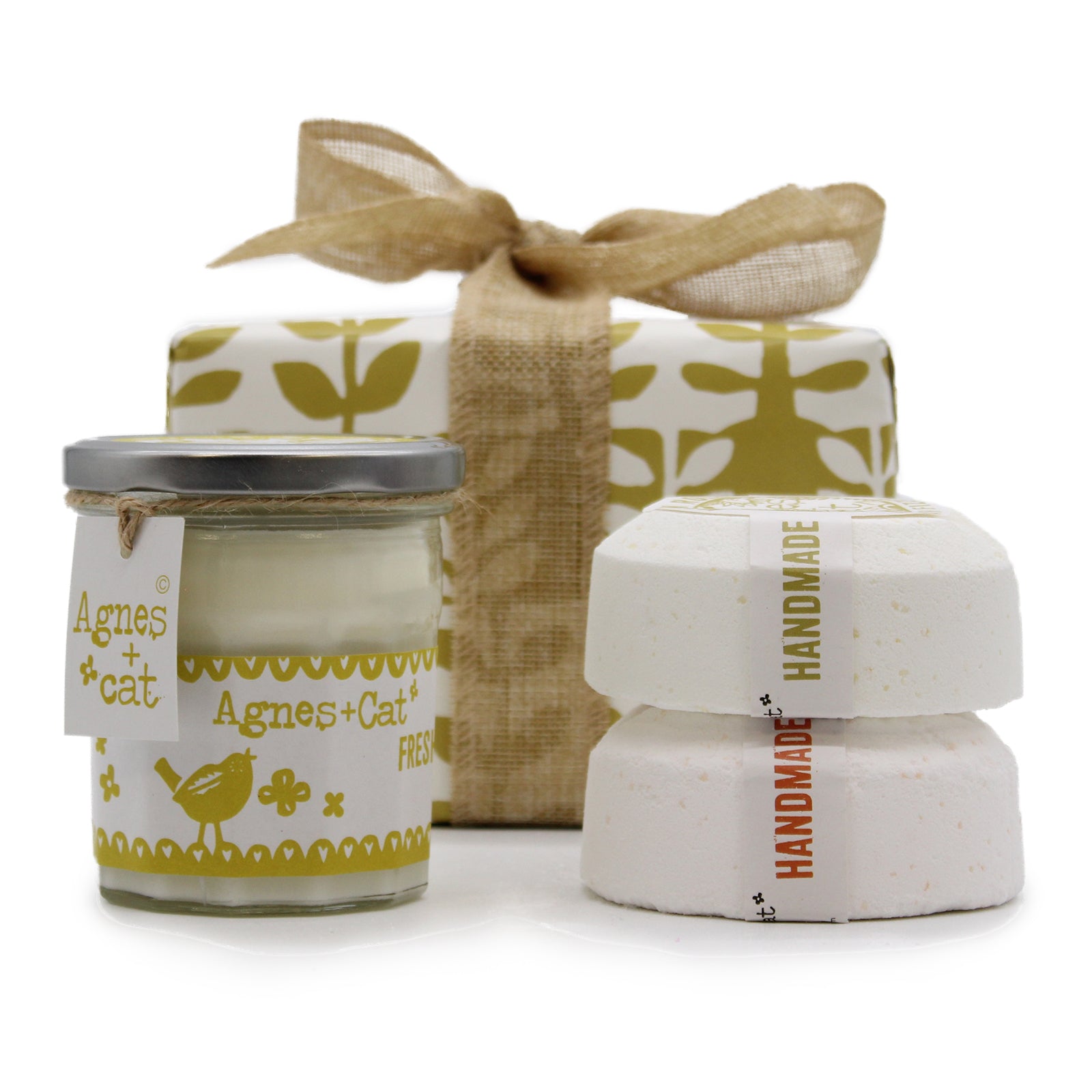 Coffret cadeau - Bougie Lune de Velours + Galets effervescents clémentine & rouleau marocain