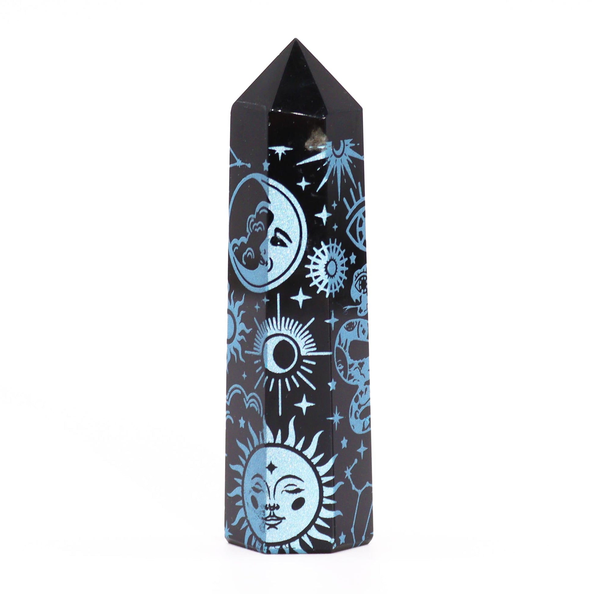 Le pouvoir à l'intérieur : L'obsidienne noire est connue pour sa capacité à protéger et à relier à la terre, en aidant à éloigner la négativité et à absorber les énergies nocives. Les symboles mystiques gravés dans chaque pièce sont censés amplifier ces effets, faisant de ces pointes des outils puissants pour la méditation, les pratiques spirituelles ou la guérison par les cristaux.