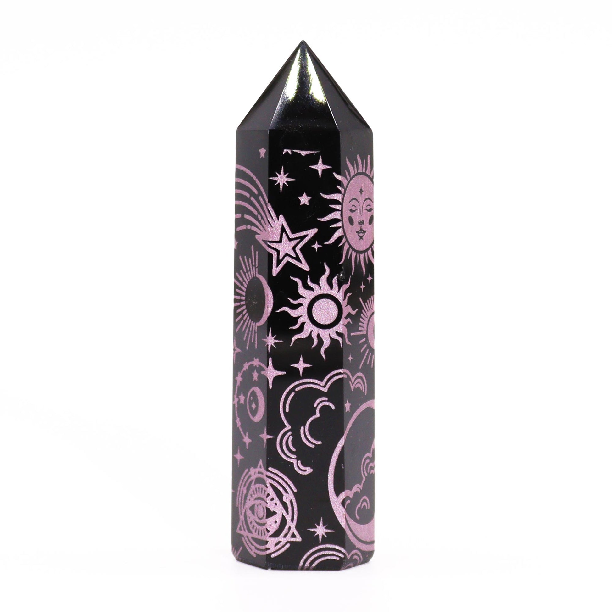 Le pouvoir à l'intérieur : L'obsidienne noire est connue pour sa capacité à protéger et à relier à la terre, en aidant à éloigner la négativité et à absorber les énergies nocives. Les symboles mystiques gravés dans chaque pièce sont censés amplifier ces effets, ce qui fait de ces pointes des outils puissants pour la méditation, les pratiques spirituelles ou la guérison par les cristaux.